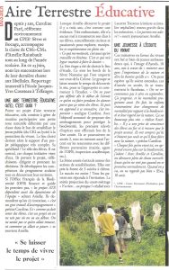 Un journaliste de Demain Vendée est venu à l’école pour discuter avec la maîtresse des CM Amélie RAIMBAULT de l’Aire Terrestre Educative. Vous trouverez l’article ci dessous.